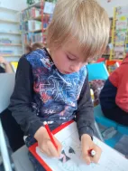 Žáci 1. B navštívili knihovnu na Doubravce. Během zajímavého projektu viděli, jak vzniká kniha. Dozvěděli se, že všechno začíná nápadem autora, poté text putuje k ilustrátorovi, jenž knihu doplní obrázky, a následně do tiskárny, kde se vytiskne a sváže. Děti si mohly některé kroky samy vyzkoušet a zjistily, kolik práce to dá a kolik lidí se podílí na tom, než se kniha dostane až ke čtenářům.