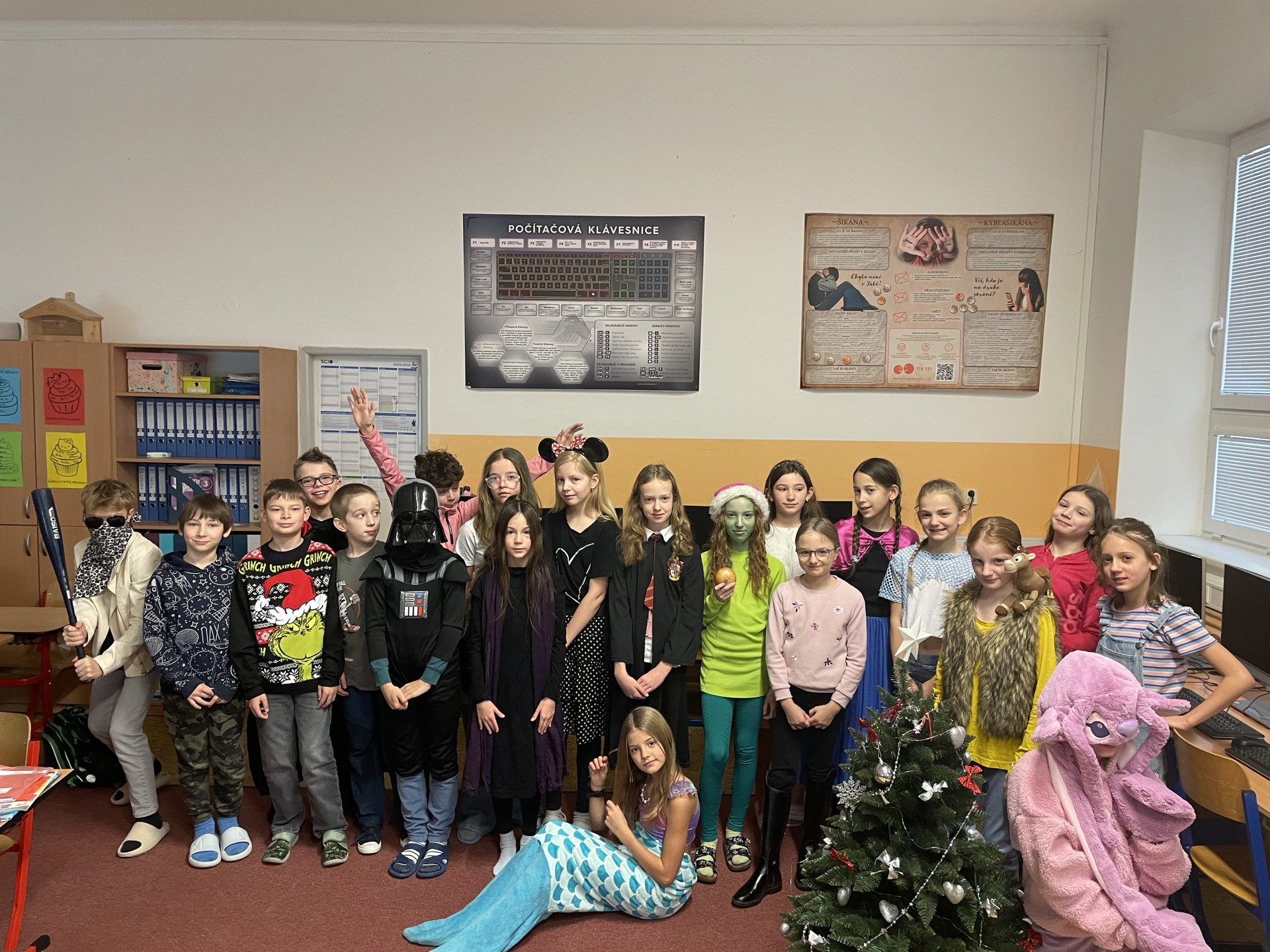 Páťáci si letos místo čokoládových adventních kalendářů vybrali možnost mít denní přáníčka. Každý napsal jedno drobné přání, které se mu v daný den ve škole splní. Například Všichni přijdou v růžovém, kluci se obléknou jako holky, vymění se hodina ČJ s přestávkou, budeme psát celý den pastelkami, paní učitelka nebude dávat " zapomínáky", budeme se koukat na vánoční film i s popcornem a tak dále a tak dále. Prosinec nám tak rychleji utekl a též jsme se nejednou pobavili nad vtipnými nápady. Přejeme všem veselé Vánoce!