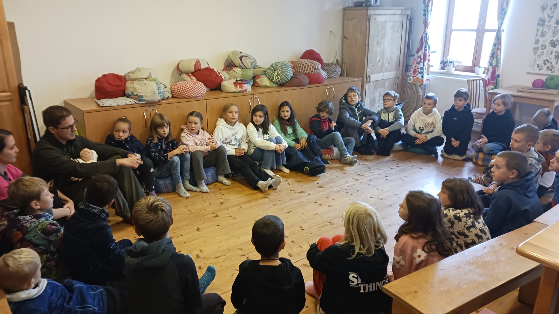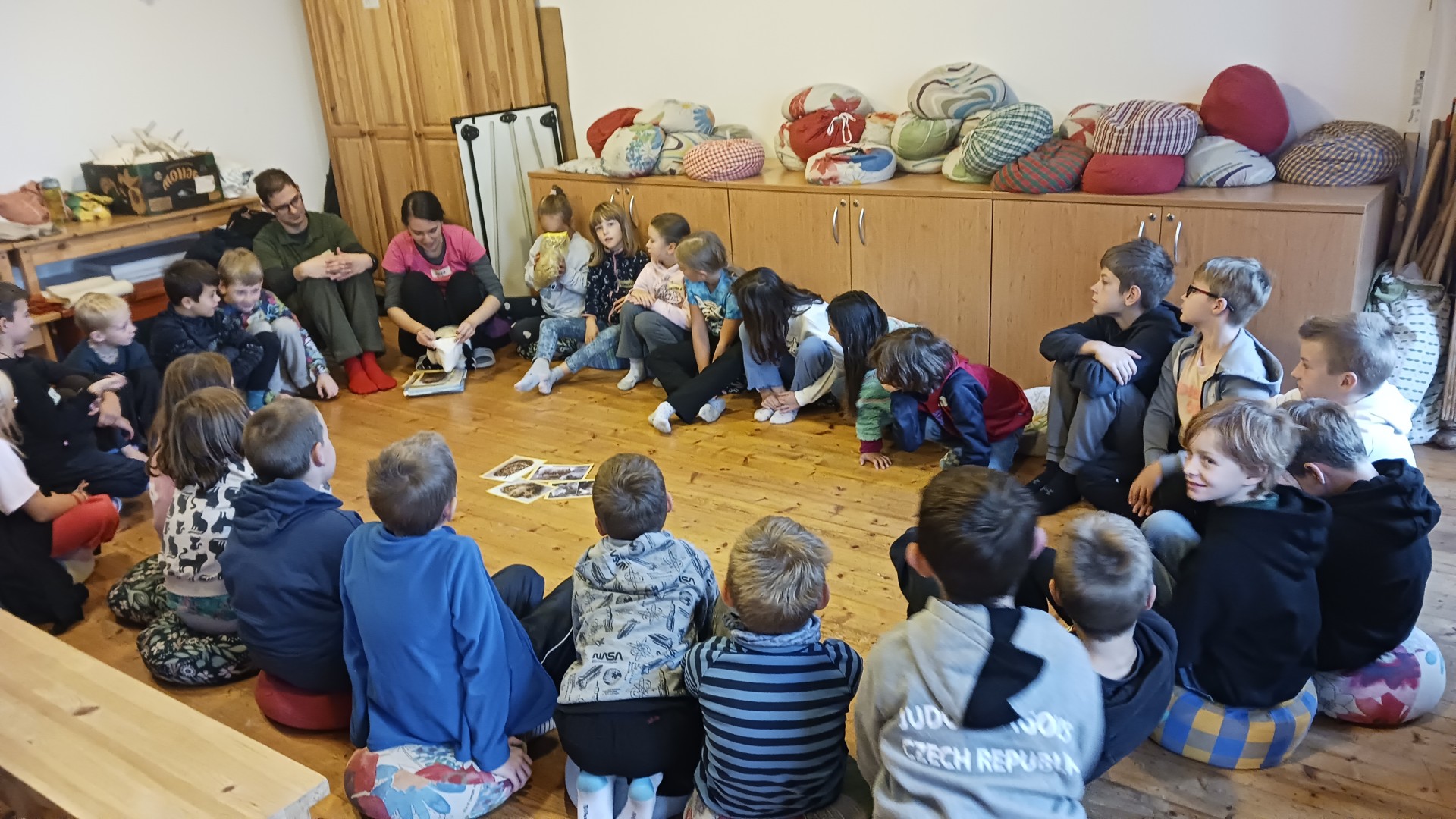 "3. třída byla na ovečkách, bylo to ve městě Prusiny, jeli jsme tam 3. října. Na začátku jsme si povídali o ovečkách. Potom jsme si vyrobili výrobek s ovčí tématikou. Šli jsme ven a hráli jsme si na ovce a vlky. Došli jsme na ovečky a krmili jsme je, bylo tam i mláďátko." Anička Hudečková a Filip Vojáček