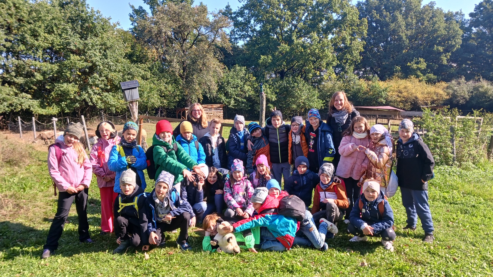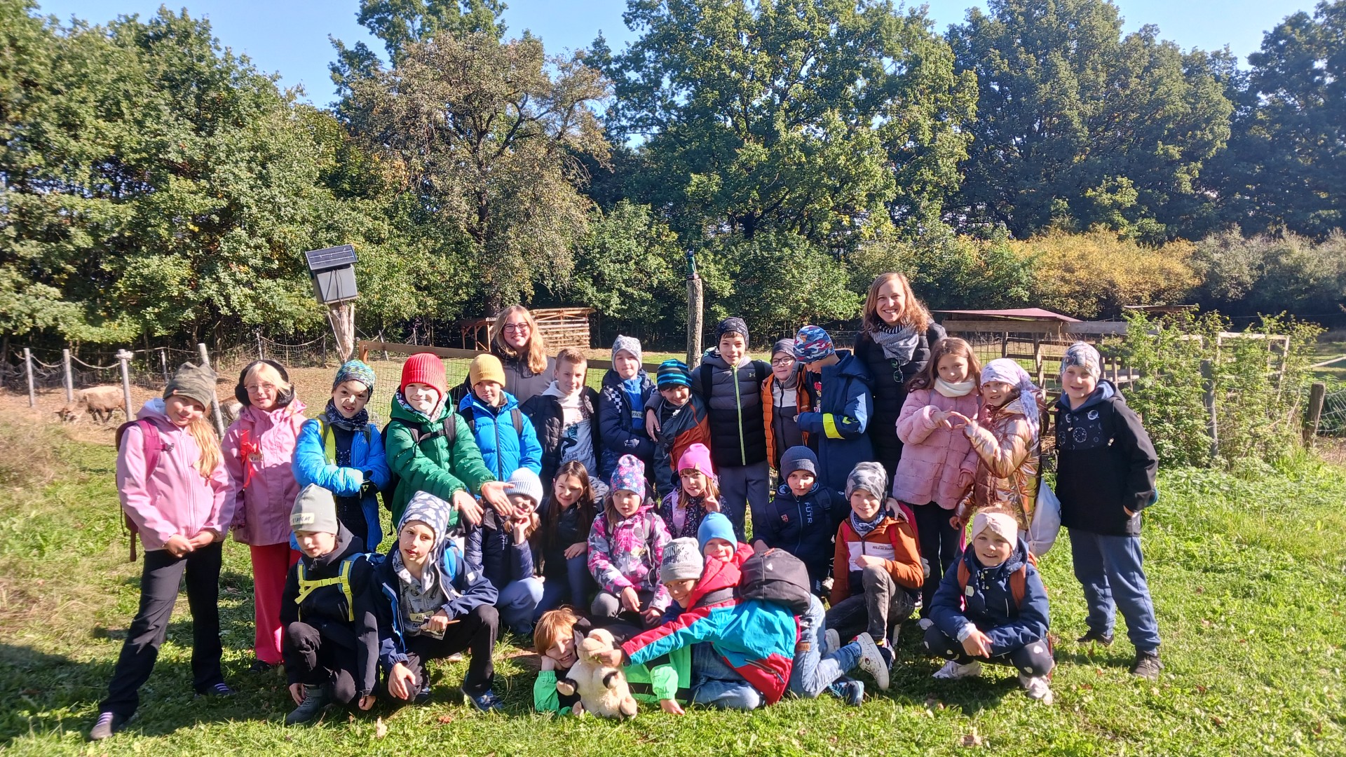 "3. třída byla na ovečkách, bylo to ve městě Prusiny, jeli jsme tam 3. října. Na začátku jsme si povídali o ovečkách. Potom jsme si vyrobili výrobek s ovčí tématikou. Šli jsme ven a hráli jsme si na ovce a vlky. Došli jsme na ovečky a krmili jsme je, bylo tam i mláďátko." Anička Hudečková a Filip Vojáček