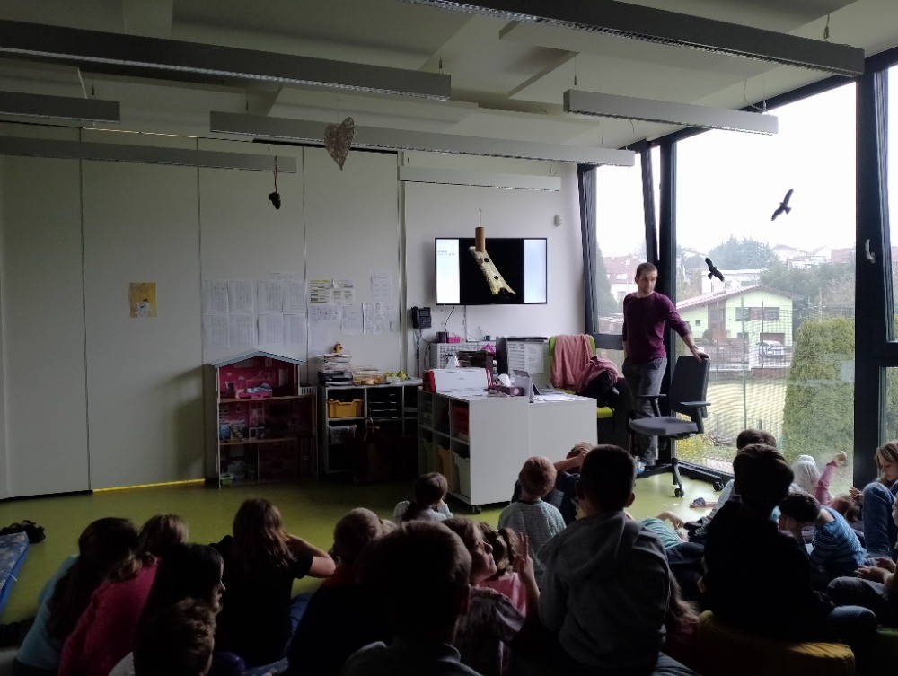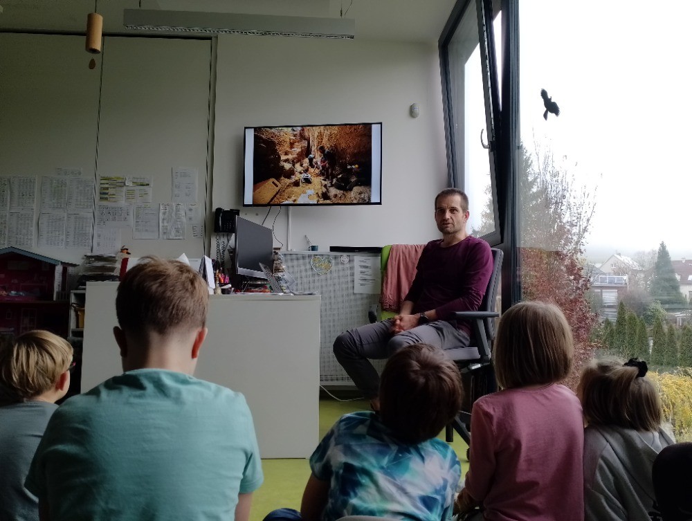 Přišel besedovat s dětmi v rámci projektu ,,Kam chodí máma s tátou do práce “ o pravěkém umění.